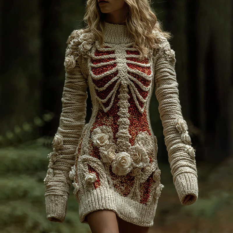 Skeleton Anatomy Roses Bandages Cozy Knit Sweater Dress