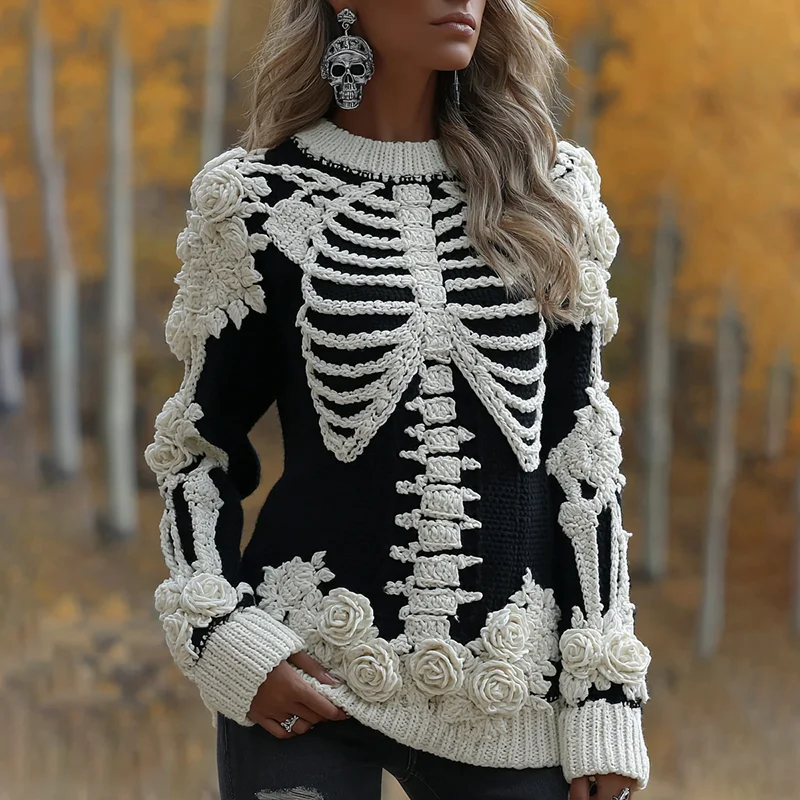 ππΉ Stay spooky and stylish this Halloween with this skeleton bones sweater adorned with roses artβperfect for keeping warm during autumn and winter festivities! π